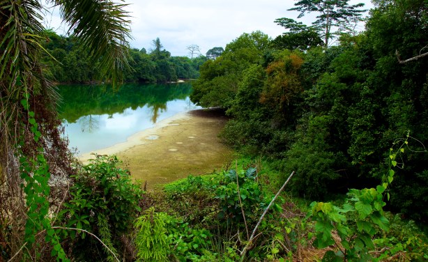 Gabon's Lac Bleu. According to local lore, animist spirits abound in the natural world in watercourses like Lac Bleu as well as in the chimpanzees, gorillas, forest elephants and hippopotamuses that ... Voir Plus »