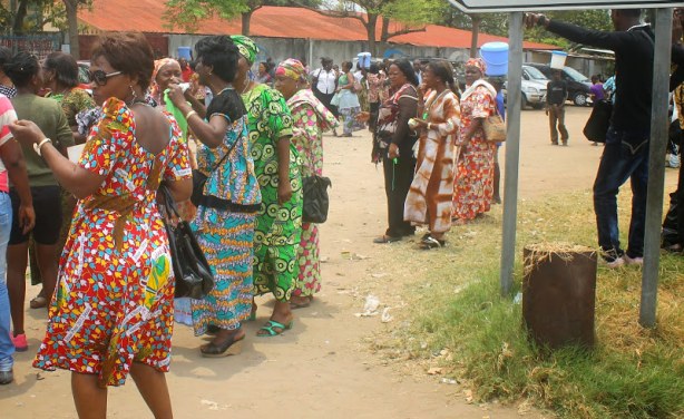 Des fidèles de l’Eglise Armée de Victoire du pasteur Kutino Fernando attendant sa sortie du centre hospitalier Nganda le 15/09/2014 à Kinshasa.